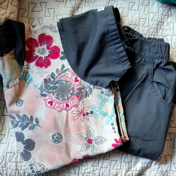 UA scrub set, floral with grey pants