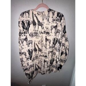Scrubs Womens L Black And Cream Open Front Animal Print Long Sleeve Modern Chic