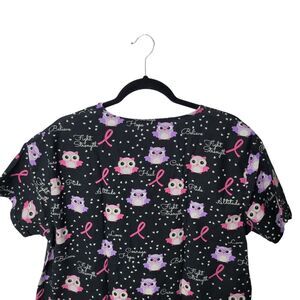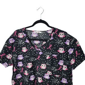 Scrubs Womens Sz L Black Owl Short Sleeve Scrubs Top