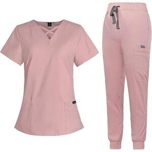 Scrubs for Women Set Modern V-Neck Top & 8 Pocket Jogger Pants Athletic Nursing