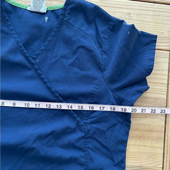 This Scrubstar top features a stylish wrap design with flutter sleeves, offering a chic and comfortable fit. The solid blue color adds a touch of elegance, making it a versatile addition to any wardrobe. Ideal for those seeking a blend of contemporary style and comfort.