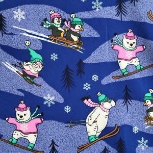 Winter Scene Print: Skiing Sledding Polar Bear, Penguins, Gnomes