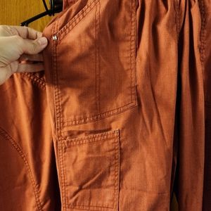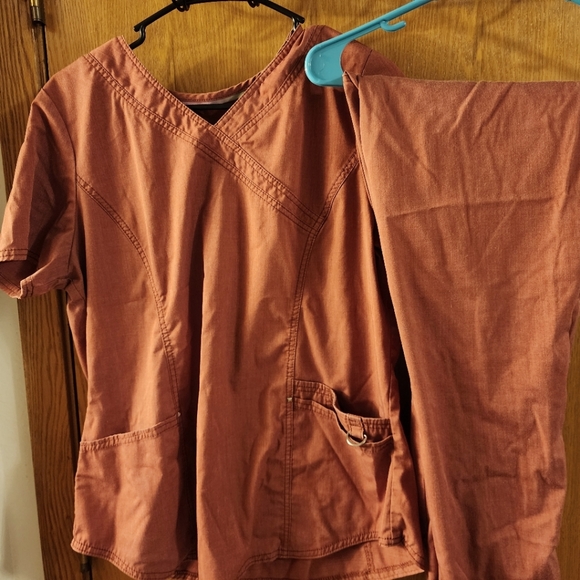 Starscrub top and bottom bundle Purchased for 40 + tax and shipping. Top: Vneck, multi pocket. Pants: Fit: jogger, Colors: Distressed Rust, Size: Medium, Style: Stretch. **Note: Found out I wasn't a fan of joggers.