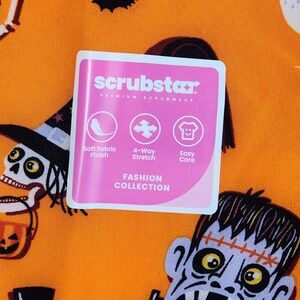 Scrubstar V Neck Scrub Top Womens Size Medium Orange Halloween Theme New