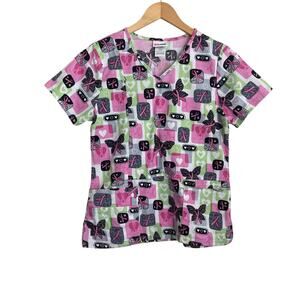 Scrubstar Women Top S Pink Uniform Medical Nurse Pattern Breast Cancer Awareness
