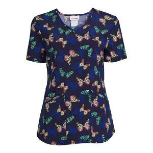 Scrubstar Womens Top Scrub Size M Blue V-neck Butterfly Print Relaxed Fit