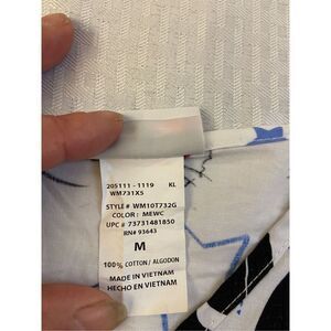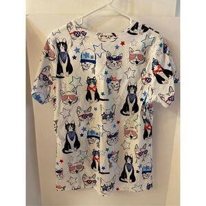 Scrubstar top white top red/blue 4th July #93643. measures 20" chest, 27" long. rn#93643 100 cotton.