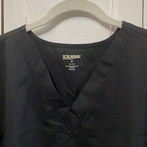 Scrubstar black scrub top size XL in great condition. Double front pockets and one chest pocket. Side slits for comfort. Armpit to armpit is approximately 26” flat and length approximately 29”.