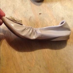 Nude shiny flat with bow