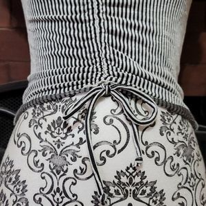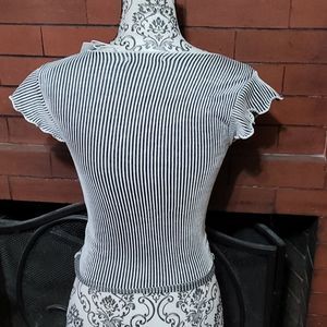 This is such a great top! The fit is tight and very sexy with the low-cut V-neck. It's all brought in, at the middle using a drawstring at the bottom. You can loosen or tighten it up.