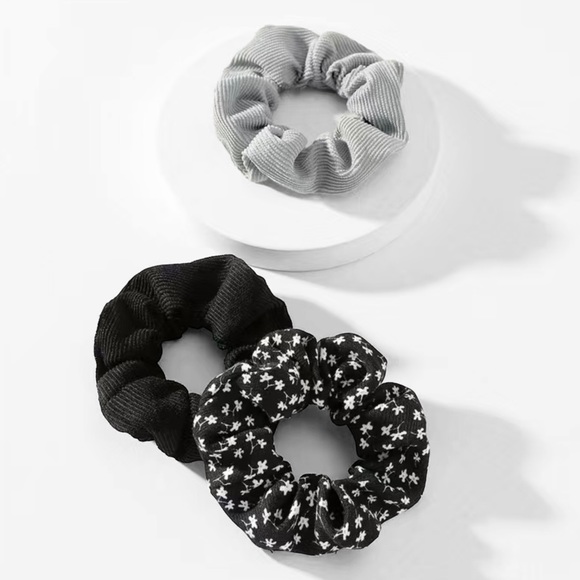 3pcs Floral Solid Color Hair Scrunchies For Women Girls and Soft Fabric Scrunchie.