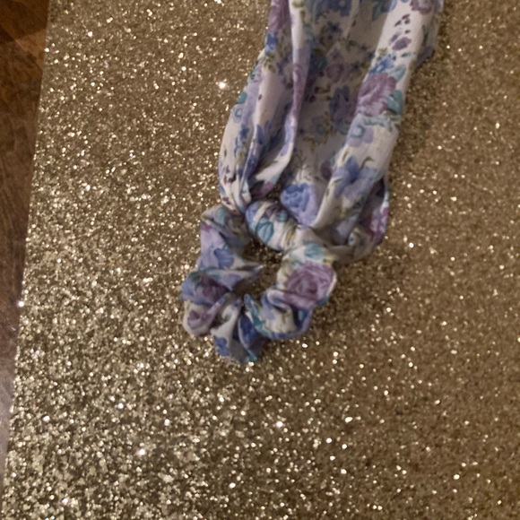 Like new blue and purple floral scarf scrunchie from Universal Thread! Scarf tails are about 12 inches long. Super cute for half up half down hair styles!