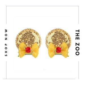 Enchanting Design: Features mouse ears adorned with Belle-themed details, capturing the essence of the beloved princess.