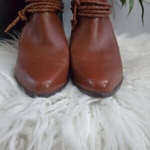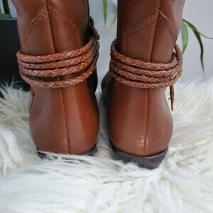 Scruples soft leather riding boots with a square pointed toe and rope accents around the ankles. These boots are pre-loved with slight wear on the right heel, but otherwise, these boots are in great condition (no rips, no stains, and come from a smoke and pet-free environment).