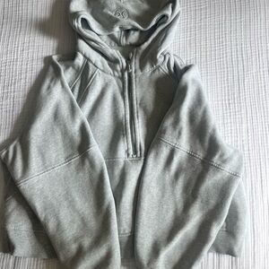 Core ultra heathered light grey Lululemon Scuba oversized half zip hoodie. Missing the plastic piece on zipper as pictured in last slide.