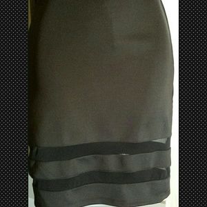 Pretty knee-length skirt with mesh bands & elasticized waistband made of thick, comfortable jersey that is machine washable. (Polyester/spandex blend) Price is firm.