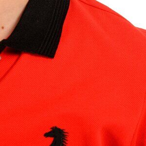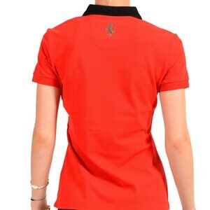 This is authentic Scuderia Ferrari Women's Red "Piquet Pr. Horse" Logo Short Sleeve Polo Shirt
