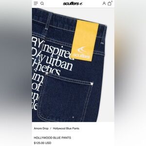 Scuffers Hollywood Blue Wide-Leg Pants with Graphict on the back. Features a Unique Design for a Trendy Look. Excellent condition. Pre owned really good jeans. Please see pictures