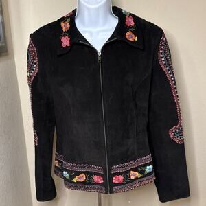 Scully Beaded Embroidered Black Suede Jacket Women's Size Small NWOT