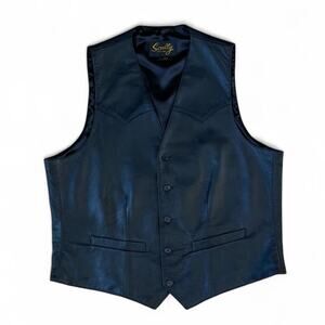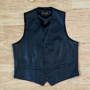 Scully Black Leather Vest Men's 44 Western Cowboy Style Button