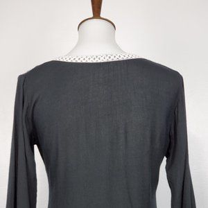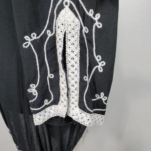 Scully Black White Boho Festival Western Rodeo Embroidered Fringe Tunic Top