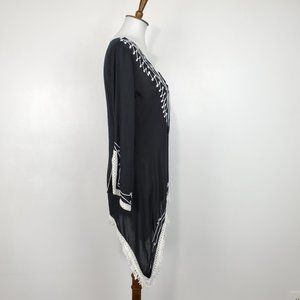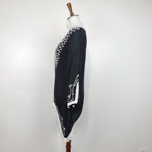 Scully Black White Boho Festival Western Rodeo Embroidered Fringe Tunic Size S