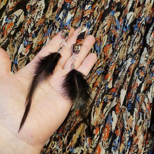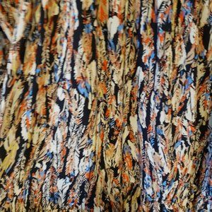 Feather print, elastic drop waist, long sleeves, ruffle skirt, fully lined.