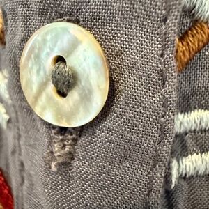 In Good pre-owned condition with second to last button replaced. Other buttons are beautiful Mother of Pearl style