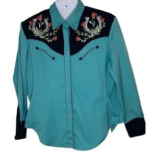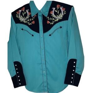 Scully Horseshoe and Roses - Women's Western Shirt XXL Embroidered Poly Bend