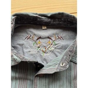 Scully L/S Pearl Snaps Western Shirt Medium Blue-Green Striped Crackle Pattern