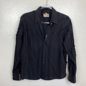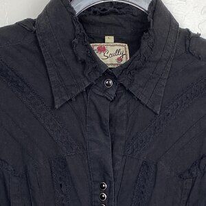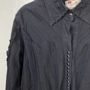 Scully Lace Trim Western Snap Front Top Black Size Large