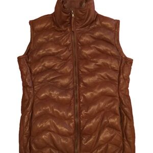 🤠 Scully Leather Western Vest Womens Ribbed Cognac Soft Zip Stand Collar 🤠
