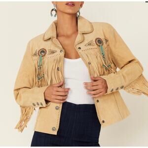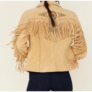 Scully Leather Womens Beaded Fringe Concho Boar Suede Jacket Old Rust,Size L,EUC