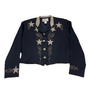 Scully Marsha Wright Vintage Jacket Women XL Crop Black Animal Print & Stars