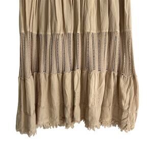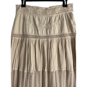 Scully Size Medium Peruvian Cotton Crocheted Floral Embroidered Frayed Hem Maxi Skirt