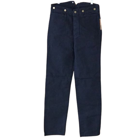 Notched Waistband With Suspender Buttons, Adjustable Rear Belt, And Buckle And A Single Right Rear Welt Pocket