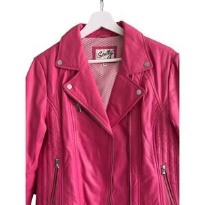 Scully Pink Leather Jacket Womens XL Moto Biker Zippers Vintage