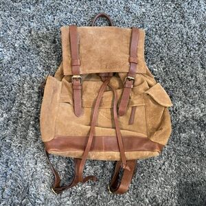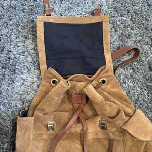 Scully Retro Nubuck Leather Cargo Drawstring Backpack in Tan/Brown