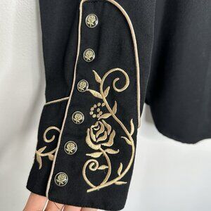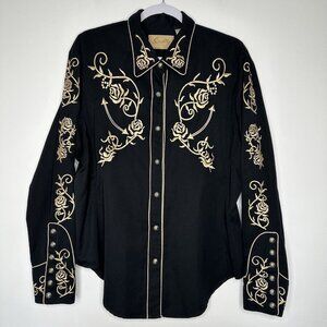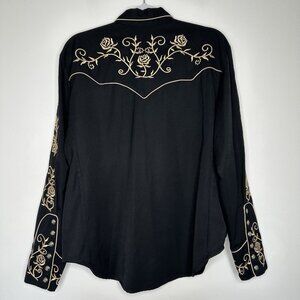 Scully Western Shirt Black Floral Embroidered Pearl Snap Large