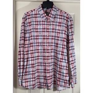 Scully Western Shirt Mens Size Large L Red Plaid Pearl Snaps Paisley Embroidered. Good Preowned Condition.