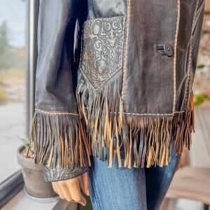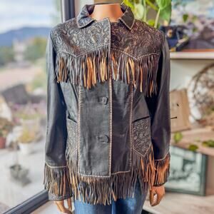 Scully, Women's Medium, Tooled Fringe Embroidered Leather Western Jacket, Cowgirl, Cowboy, Western, Country Western