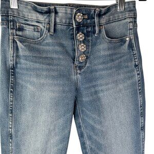 Sculpt OP Straight Leg High-Rise Denim Jeans Rhinestone Button Closure