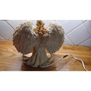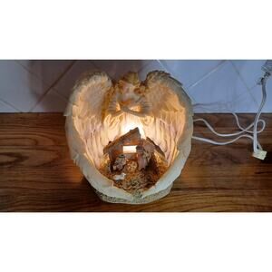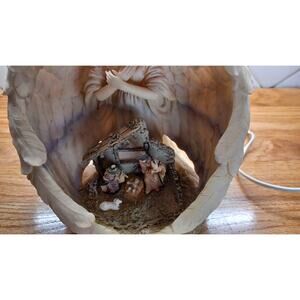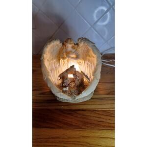 Sculpted Guardian Angel Nativity Manger Electric Nightlight. Cord has been repaired with electrical tape as shown in photos. Card could be replaced. Approx 8" tall and 8" wide.