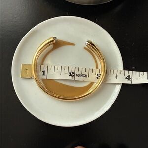 Chic gold bracelet featuring sleek silver tips. Stylish and versatile accessory.