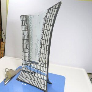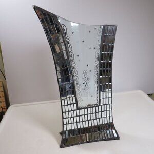 Sculptural Mirrored tile Glass Vase with clear glass bowed center