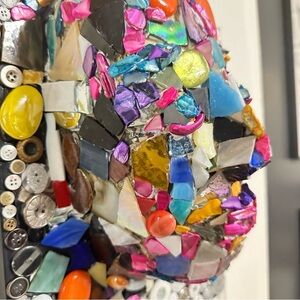 Sculpture Head Bust papier-mâché, Mosaic Glass Beads Buttons Figure art