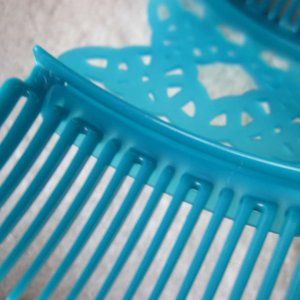 Two Plastic Combs, attached by elaborate flexible silicone type material cut outs.
