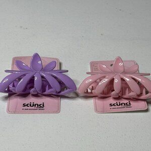Scunci Flower Claw Clips 2 Pack Purple Pink Large Hair Claw Pastel Spring Gift