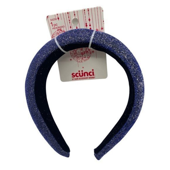Scunci Headband Dark Blue Silver Sparkle Headband 1 Inch Wide New