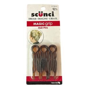 Dream. Imagine. Create. Achieve a perfect, all-day hold with Scunci Magic-Grip Hair Pins. This 12-piece set features an innovative "magic" grip technology designed to keep your updos, buns, and intricate styles securely in place without slipping. Ideal for all hair types. Style #67298.